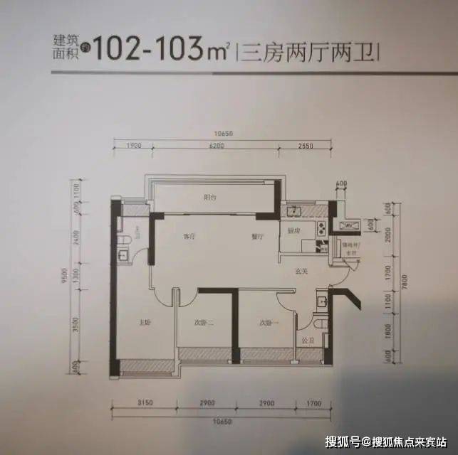 03.东北向【建面102㎡3室2厅2卫】3梯6户,层高3.00米,总楼层47F,约420万