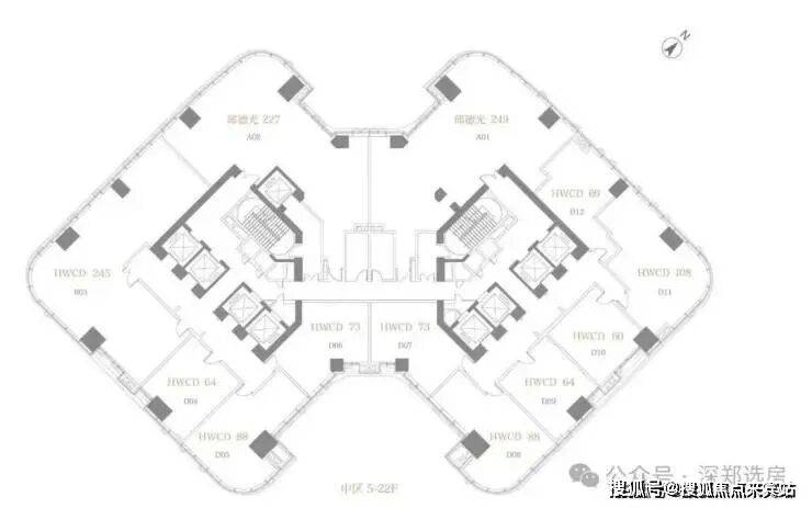 方胜纹双核心筒的设计使得整栋建筑更加高效和私密,并实现了双专梯电梯入户,为塔尖人群高效的工作和私密的生活而服务。转角处曲线设计,拓宽了整个建筑界面,使得建筑拥有270°转角无柱开放式观景视野。是塔尖人群拥揽深港的极佳观景台,足以盛放您帷幄城市的雄心。