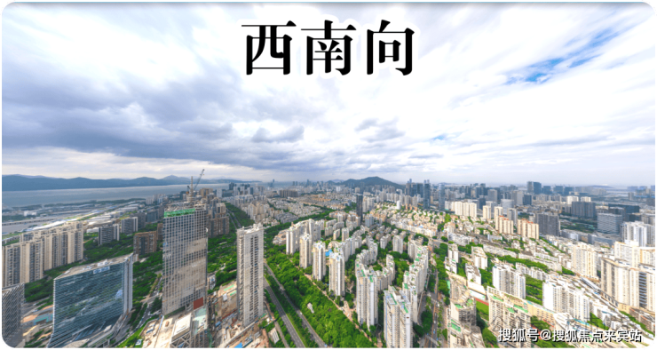 东边看人才公园和深圳湾方向,海景、公园、地标景观最好,前方目前建筑稀疏,且高度都在百米内。100米以内的楼层也能看人才公园、深圳湾海景,就是部分角度会有遮挡。100米以上基本就是无遮挡景观了,越高的楼层观感越好。