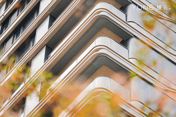 建筑的主立面,层间铝板线条的划分、阳台...无处不见这种圆润温柔的表达。