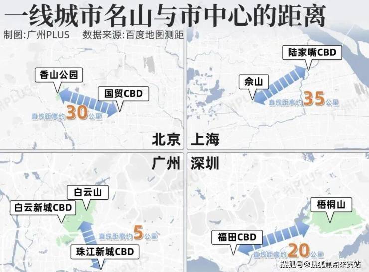 相比之下,其它一线城市的代表性名山,与CBD的距离都在二三十公里开外。
