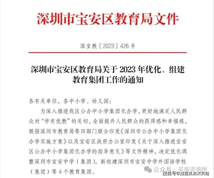 2区还有一大亮点就是名校深外确定性!之前一直是只有深外宝安本部由于学位有限很多家长怕后期学位不够!在2023年12月11日,宝安区教育局发布通知,决定优化调整深圳市宝安中学(集团),新组建深圳外国语学校宝安学校(集团)等4个教育集团。