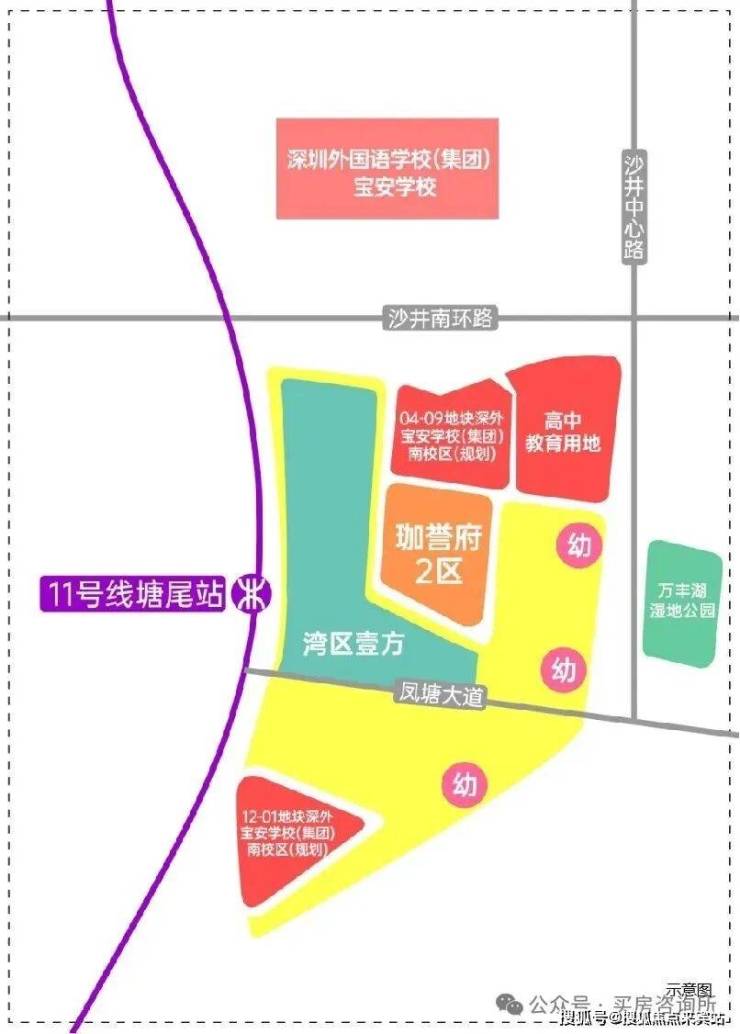 这里需要注意的是目前已经开学的深圳外国语宝安学校(本部)只有珈誉府目前在售的1-2区是在学区范围内,凤凰大道以北!目前在售的鸿荣源珈誉府玖玺是凤凰大道以南是上不了这个学校得,不过好在珈誉府1-2区楼下以及玖玺楼下的两个教育地块也纳入深圳外国语集团啦后期也是能上自家楼下的名校的