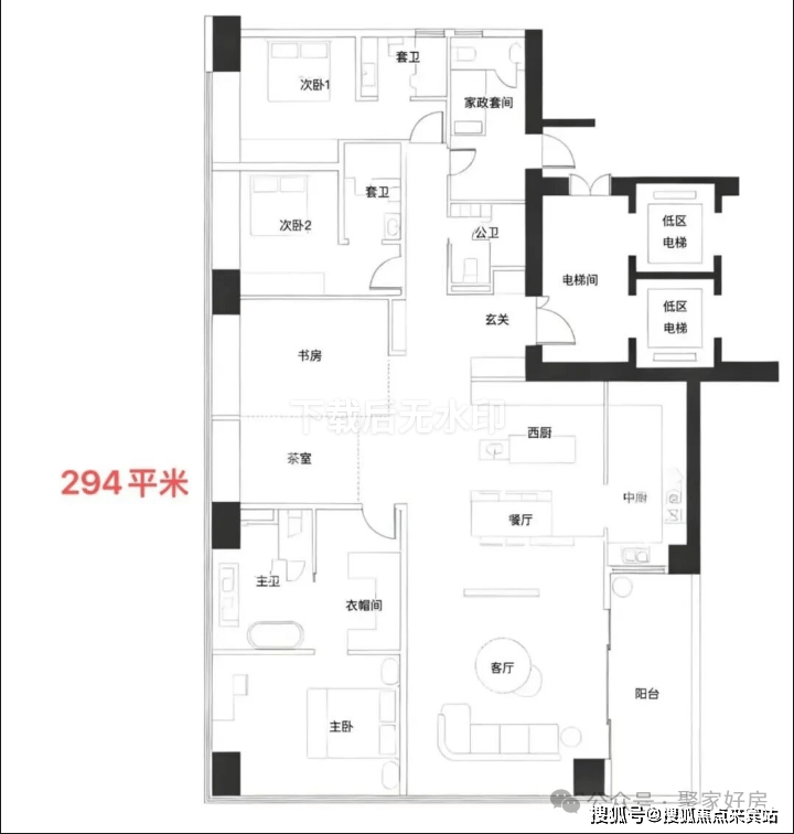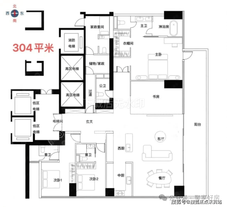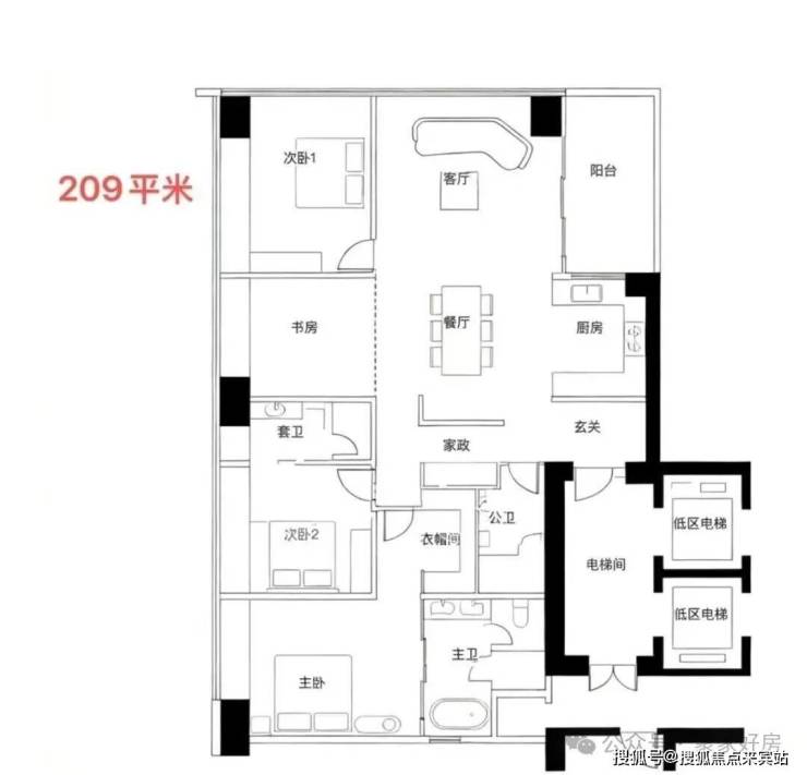 · 低区5F起(150米以内)是约209-304㎡四房以上大户型;