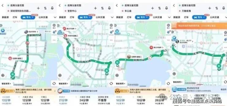 <自驾>:周边分布有多条高速/快速路及区域主干道,如西侧是后海大道,北侧是滨海大道、南侧是东滨隧道,去往南山科技园13分钟,去往前海、福田、宝中大概在15-20分钟。