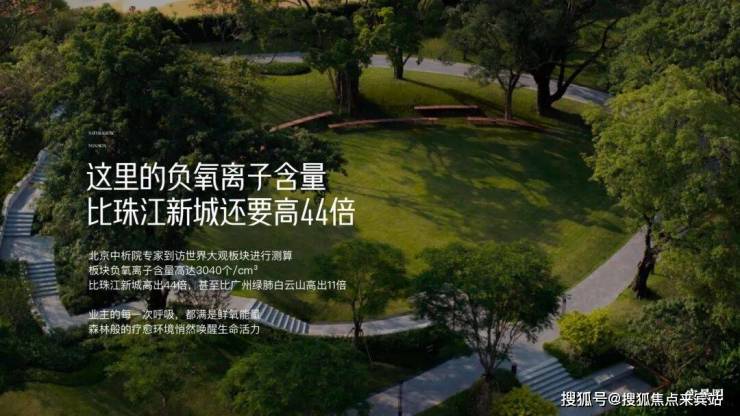 经北京中析院报告得出:负离子含氧量比珠江新城高44倍,比白云山高11倍,具备天然且优质的豪宅因子。