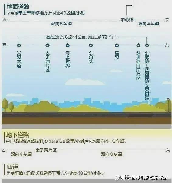 值得一提的是,蛇口的交通规划中最令人期待的莫过于望海路快速化改造,东西向连接兴海大道和沙河西路,全长约为8.241公里,呈“U”字形,将极大提升片区通达度,改造已于2021年开工,工期预计为72个月,其中微波山隧道导洞已顺利贯通,预计今年10月完工。望海路将改造为“地下快速路——地面主干路”的复合通道。望海路快速通道西起兴海大道,东接沙河西路,途经太子湾、海上世界、蛇口老城、后海填海区等片区,全长约8公里。据悉,望海路改造将分为地下、地上双层道路,其中,地下道路定位为城市快速路,地面道路定位为城市主干道。建成后,蛇口半岛将形成快速环路,对外出行时间平均缩短15分钟以上,为整个南山区,尤其是前海蛇口自贸片区提供更加高效、快捷的对外联系通道。