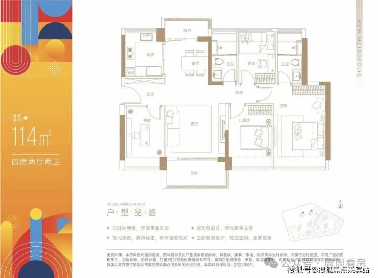 114平4房2厅2卫:南北通错厅设计,使用率77.66%(不包含赠送面积