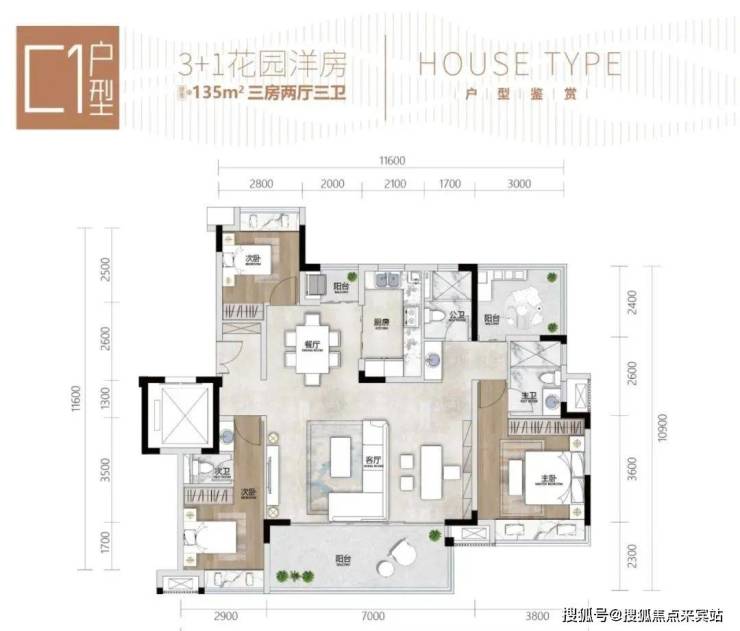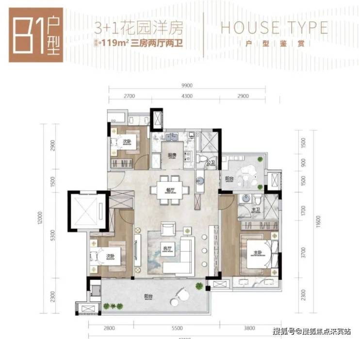 必买价值八【优享户型】:约108㎡3+1纯板房,明厨明卫双阳台,全家均享独立度假空间。