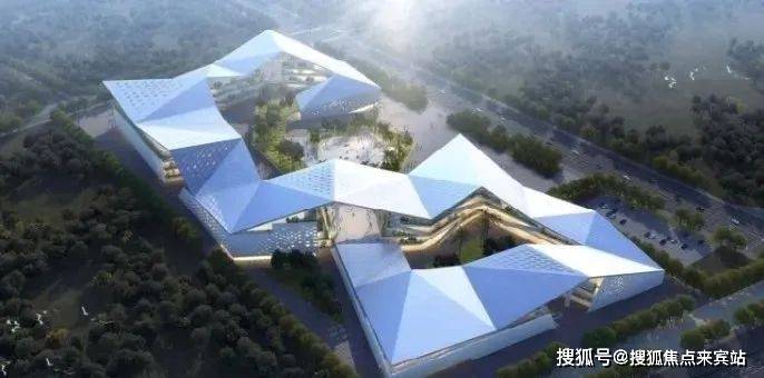 国际配套(五馆一中心效果图)占地10万平方米,地上建筑组成如下: