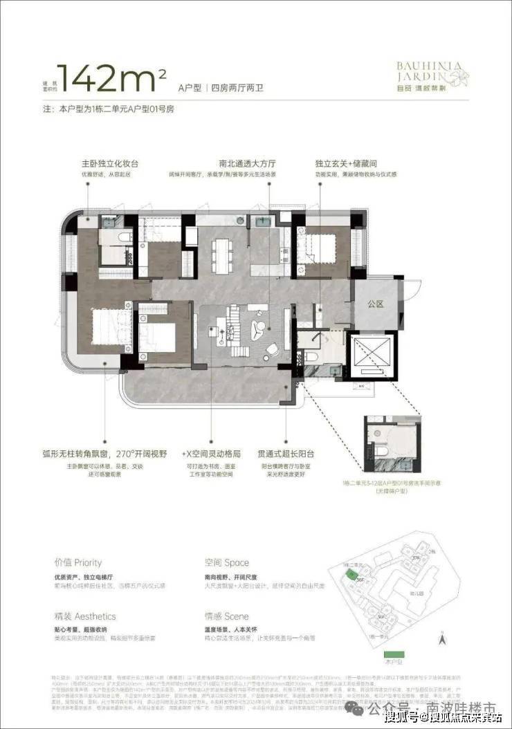 『湾啟紫荆府』项目为带精装修交付,居家必备的家具、家电、设施都是交付即拥有,营销中心设置有111㎡-121㎡-142㎡三个展示样板房,具体精装修交付标准及样板房创意展示空间可参考下图: