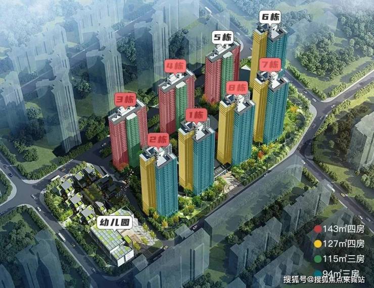 共有8栋住宅、8栋商业以及1所12班幼儿园,总占地约3.46万平,容积率2.88,绿化率35%。