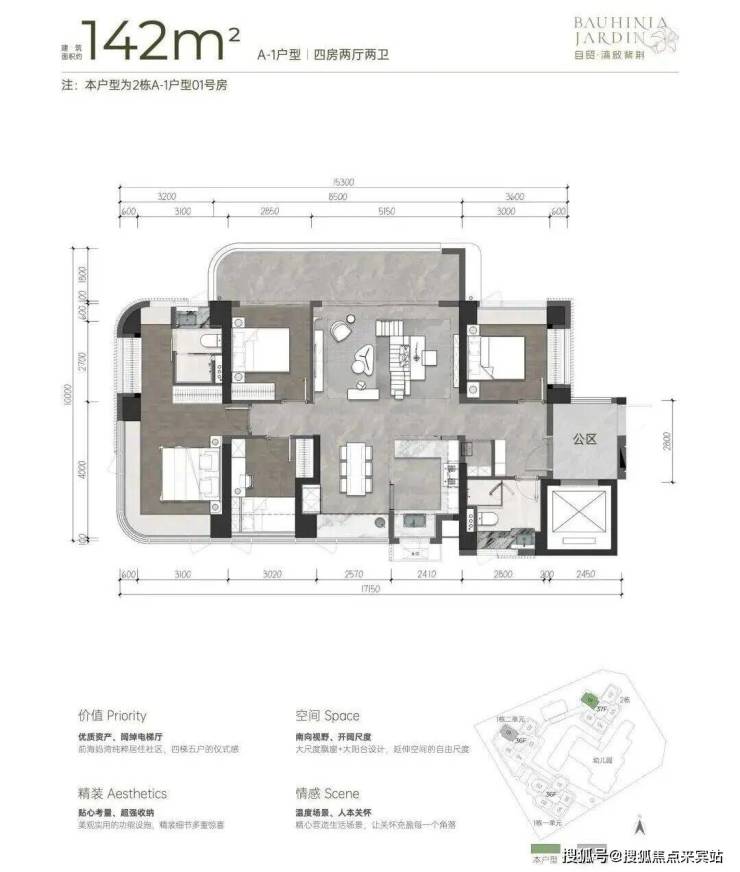 梯户比:4梯5户,独立电梯厅设计