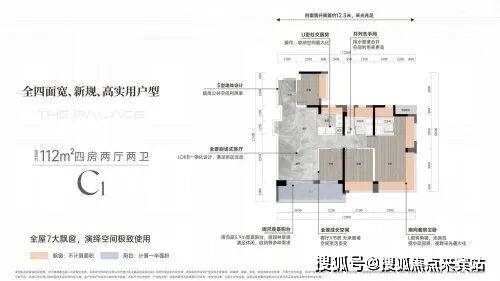 户型:首推1栋1单元,户型建面约89-112㎡,涵盖3-4房,包括竖厅动静分区、南北通透等设计,得房率高达95%-101%(含赠送面积)。