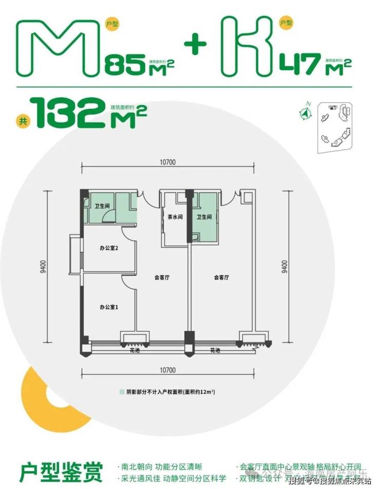 M户型两房一卫+K户型开间 132㎡双钥匙