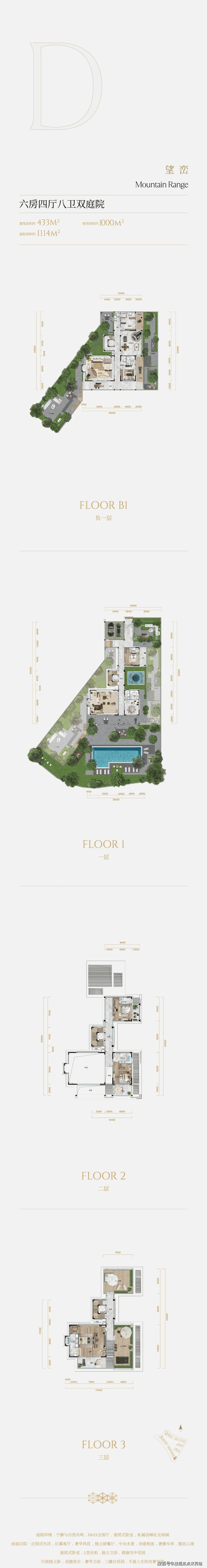 「山海之间 千平大院 独栋别墅」建面约344-445㎡独栋,千平大院的传世藏品①超低密规制,约0.3容积率②层层阔绰花园,无界度假风情③行政级主卧,奢华规制私密静逸