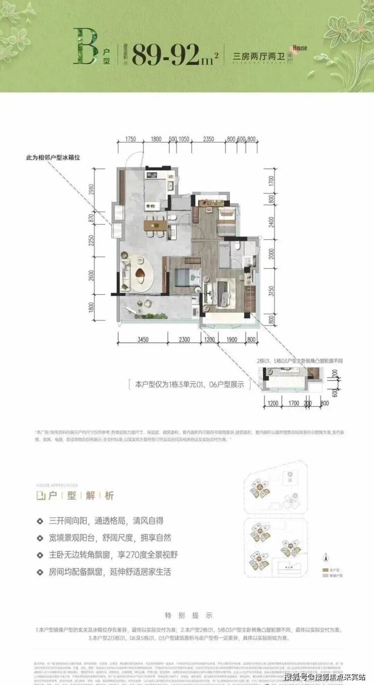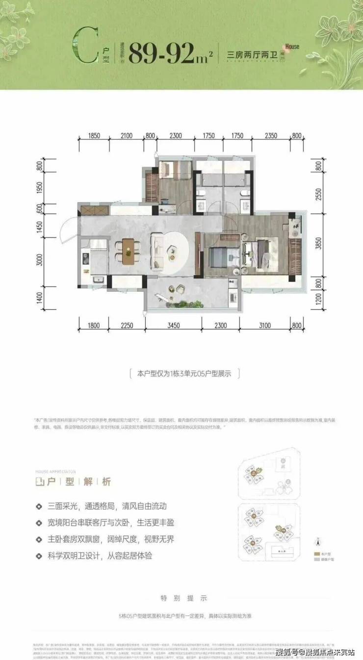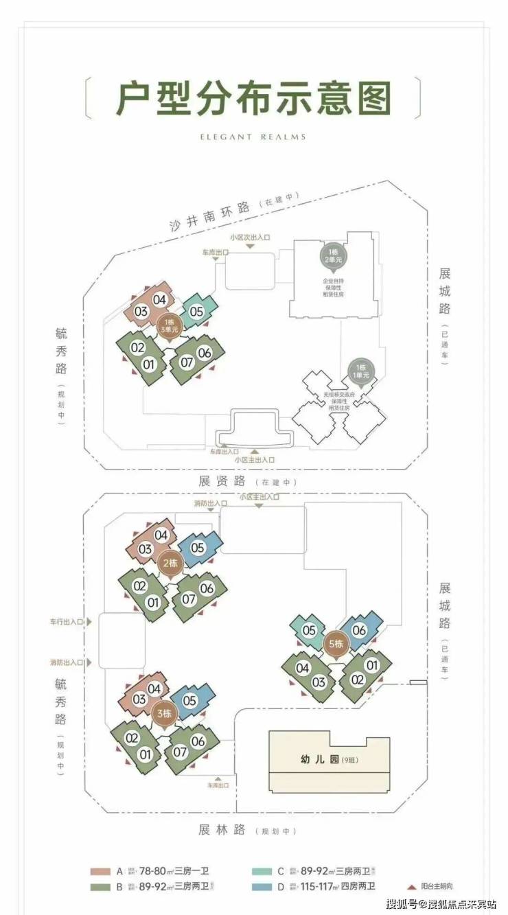招商会展湾雍境名邸位于宝安沙井大前海会展湾片区的招商会展湾雍境名邸,本次是招商会展湾雍境二期,首推1栋3单元的195套房源,面积段有80㎡3房1卫,91㎡3房2卫,92㎡3房2卫3种户型,是3梯7户的普通高层,预计2027年9月精装交楼。