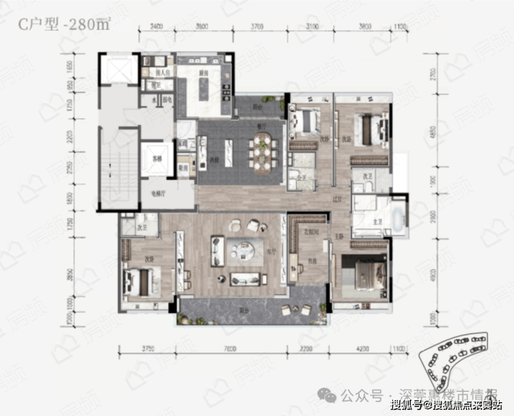 项目均为建面经200-350㎡纯粹业主圈层大平层,三梯两户设计,实现专梯专户享受,双阳台观景,开阔客餐厅、中西双厨、3.5米PLUS层高,将生活尺度大大拉满!(部分户型)