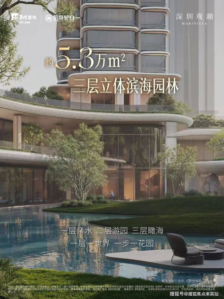 🔹5.5万㎡三层立体园林,130%园林占比冠绝深圳以“森海·浮屿”为设计理念,打造深圳最大的临海300米垂直立体园林,底盘为“海心”,10栋楼宇对应10座“岛屿”,一栋一花园入户。三层庭院无明确楼层分割,以坡度和转折自然融合,户均园林面积约90㎡,漫步其中移步换景,沉浸式感受“森与海”的交融。