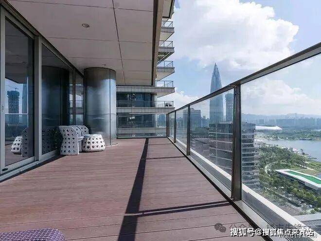 伫立于客厅的宽阔阳台上,后海总部基地和深圳湾及海天一线景观尽收眼底。