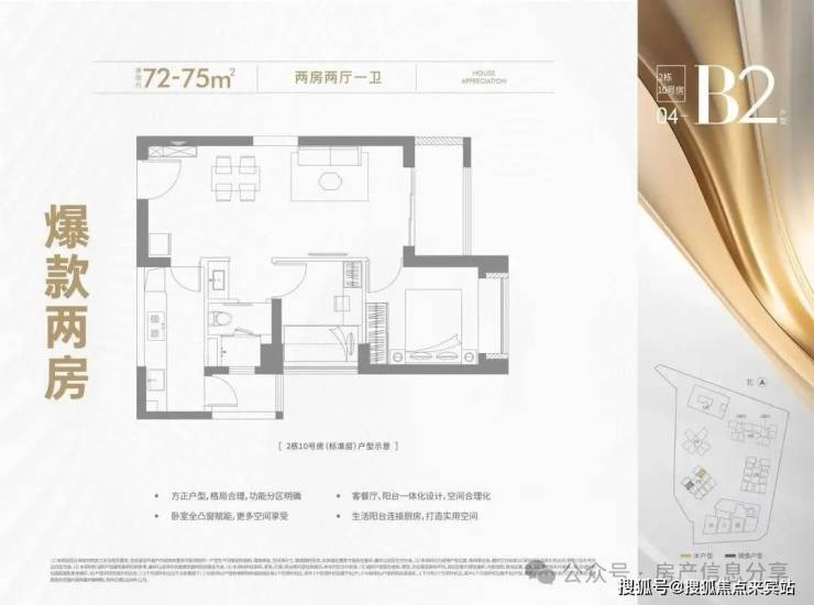 其中72-75平2房2厅1卫的户型,这个户型应该是关注度最高的,因为总价低适合刚需入手。