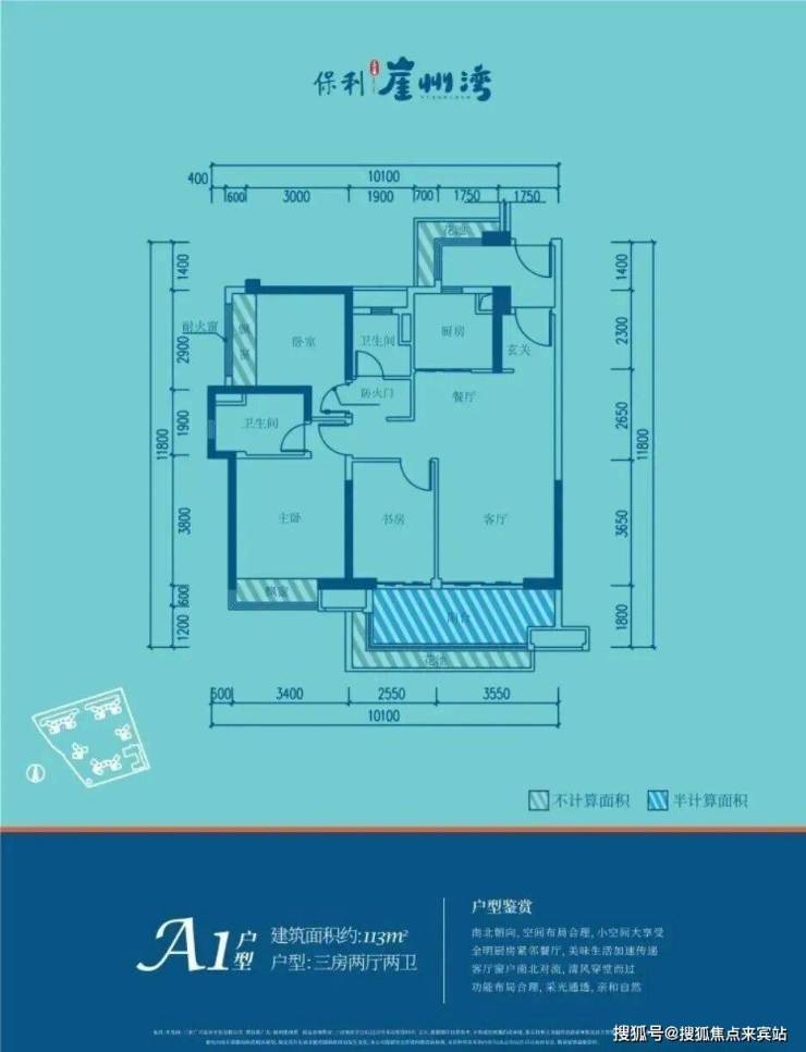 💎【在售主力户型】:108-130㎡三房🏖A1户型113㎡三房两厅两卫
