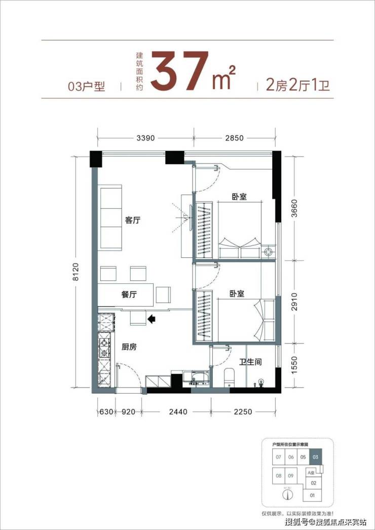【产品面积】约37㎡小两房(实际套内使用面积接近54㎡)