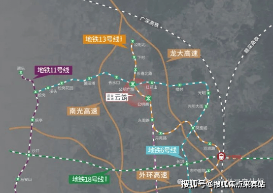 地铁:项目距离地铁6号线公明广场站约1.1公里、地铁13号线公明南站(在建)约700米。邻近龙大高速、南光高速,毗邻公明南环大道、松白路。