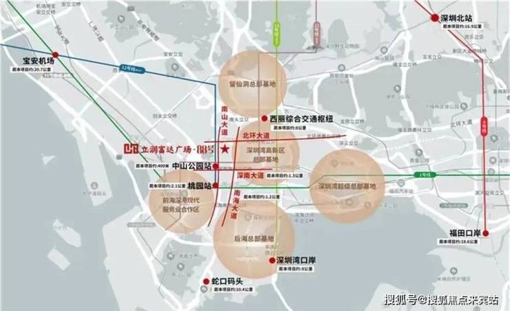 中国科创看深圳,深圳科创看南山,深圳市6+1总部基地,南山区独占4+1,项目毗邻深圳湾高新区总部基地,前海合作区,后海、深圳湾、留仙洞总部基地环绕,战略高地围合,智领深圳价值中芯