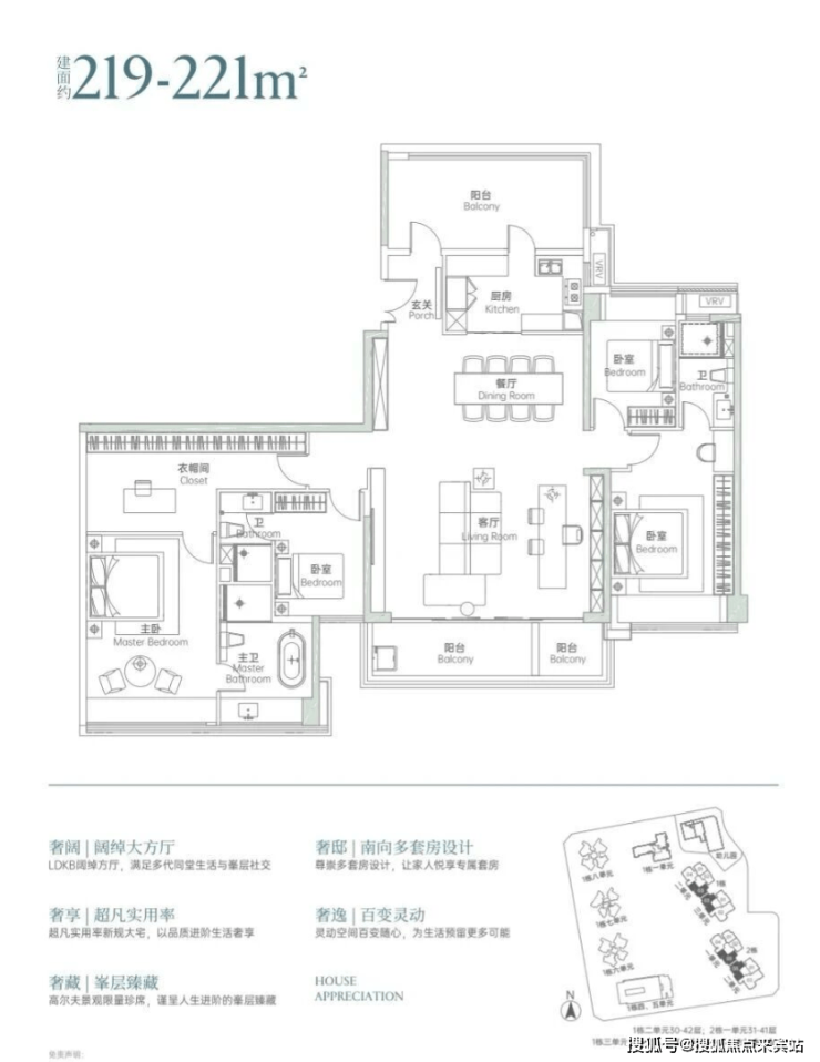 复式产品更显奢华:2栋1单元209-369㎡(5-9房)、2栋2单元243-491㎡(6-11房)