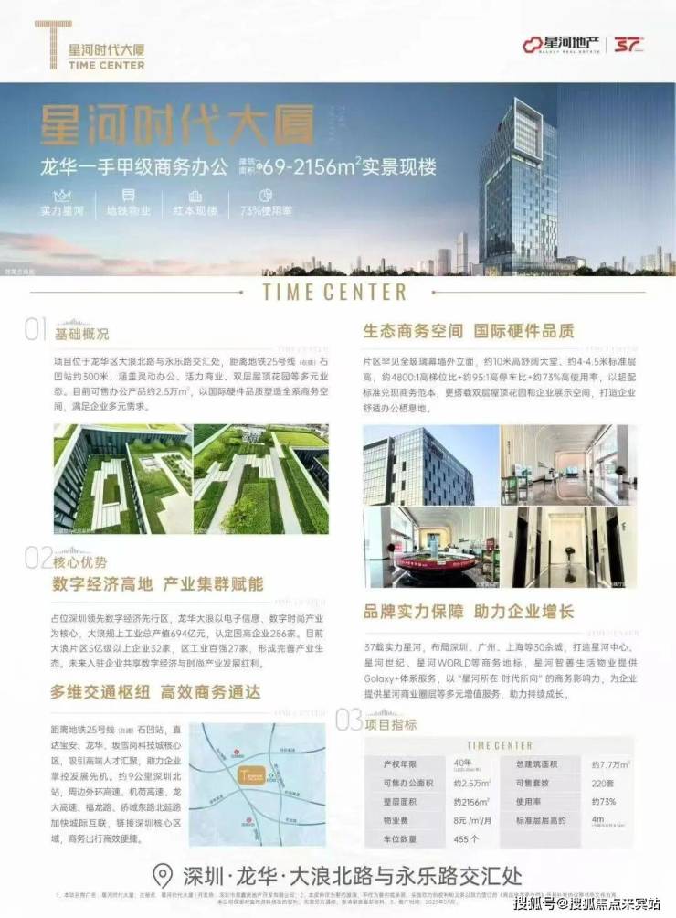 星河时代大厦 - 星河集团开发,是龙华大浪片区唯一在售写字楼,产权性质:商业办公,面积:70-280-530-1100-2156㎡(可自由组合),均价1️⃣·6️⃣万/㎡,轻松上车, 红本现楼, 即买即用。