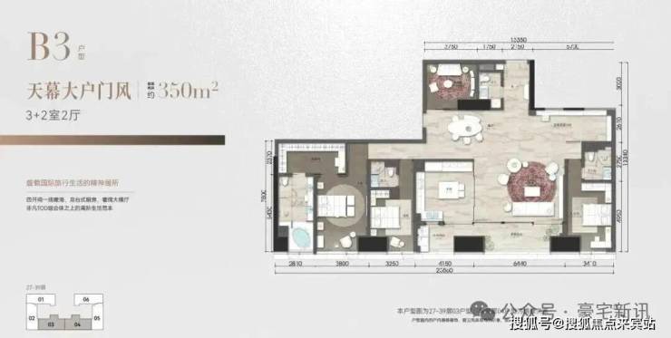 ◎建面约350㎡ 3+2室2厅,天幕大户门风