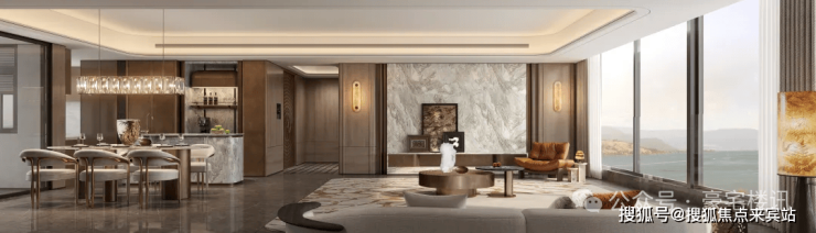 首开建面约165㎡三江美学样板,近19米四开间观江面缔造罕见江景视角。
