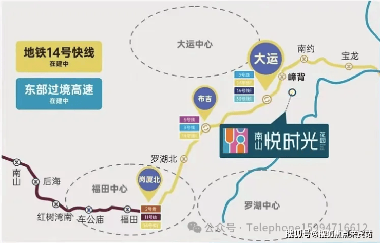 14号快线:东部首条快线,时速达120公里,预计2022年9月底通车。南山悦时光毗邻嶂背站,1站大运,8站福田,30分钟直抵福田中心。