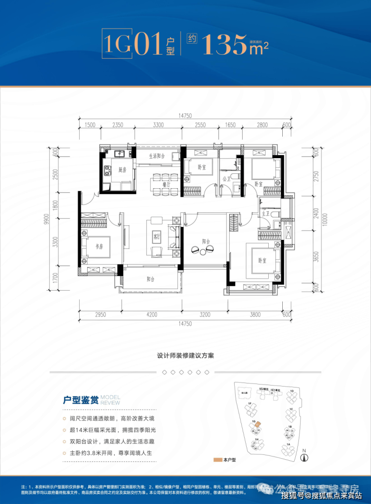 首推1栋B/G/H/E座,共333套,面积约81㎡3房2卫、89-109㎡4房2卫、135m²5房2卫。