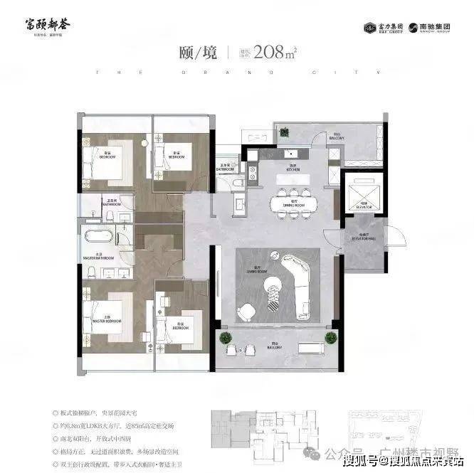 约6.6m宽景阳台,全屋空间通透感强,超22㎡主卧套间,奢阔私享空间