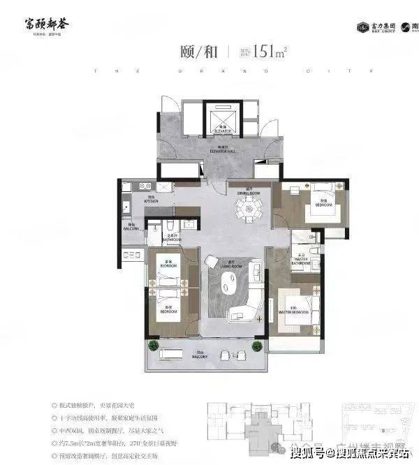 颐/和 151㎡ —— 4房2厅2卫,板式独梯独户,央景花园大宅,十字动线高使用率,凝聚家庭生活氛围 中西双厨,圆桌规制餐厅,尽显大家之气,约7.5m长*2m宽奢华阳台,270°全景巨幕视野, 预留改造奢阔横厅,创意高定社交主场