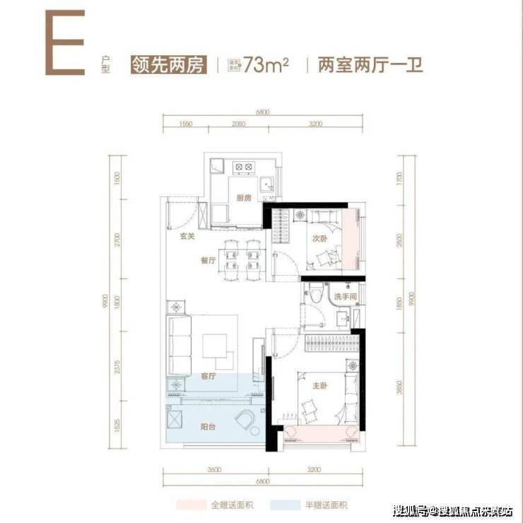 73㎡,两室两厅一卫:多功能的入户玄关,打造出超强收纳空间;双厅合一,空间阔绰,约3.6㎡宽境阳台饱览多重美景;房间均带大飘窗,灵动舒适。底首付,宜居宜租,多重选择。