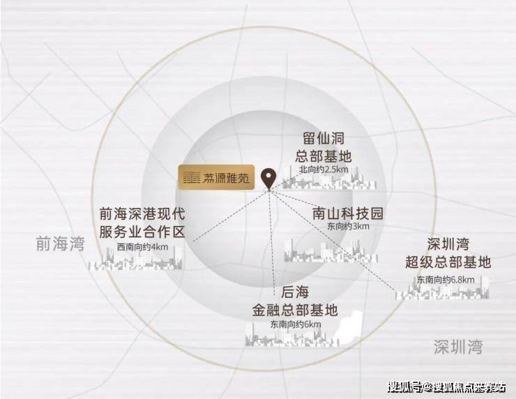 前海深港合作区(西南向约4km):定位国家战略性门户枢纽,未来将打造成世界级城市新中心,规划就业人口约65万人,居住人口15万人。