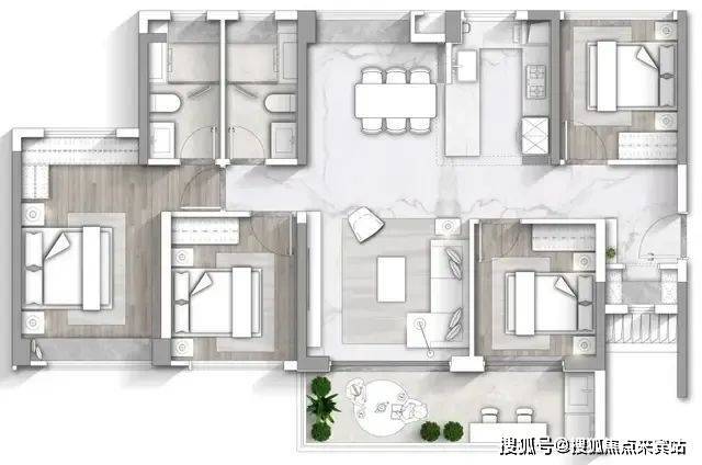 88平做到四房两卫双开间阳台,实用率去到130%,使用面积可以去到110平!!