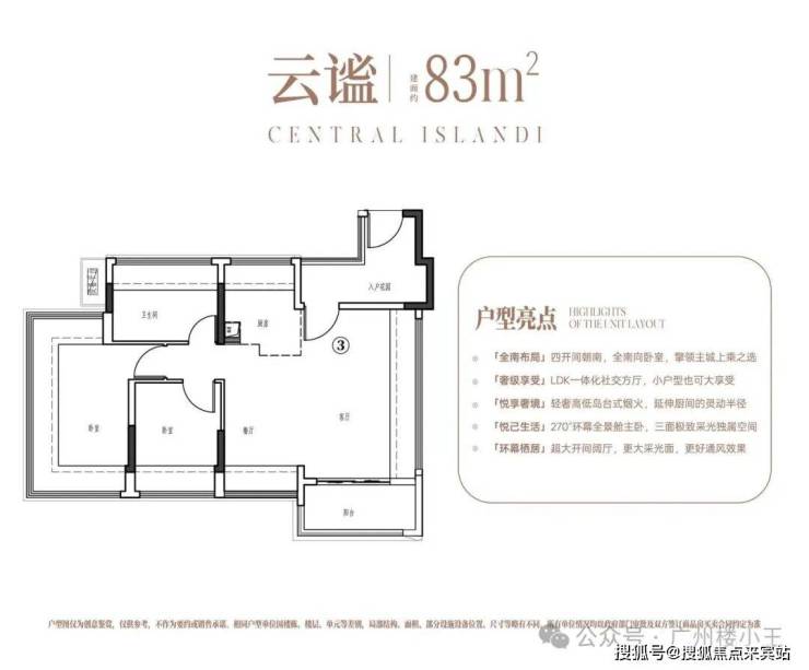 5、户型优势:可以参考越秀云悦的户型设计,88㎡户型能做到四空间配置,四开间朝南,主卧和一间次卧都有270°的大面转角飘窗;105㎡户型全屋4-4.5面宽朝南,客餐厨空间做到南北对流,餐厅一侧也带有大面宽的飘窗。