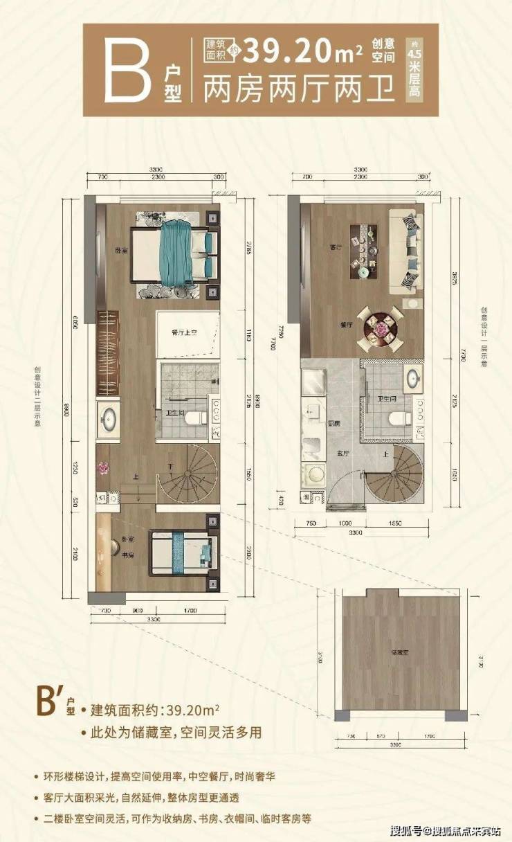 B户型 39.20㎡两房两厅二卫