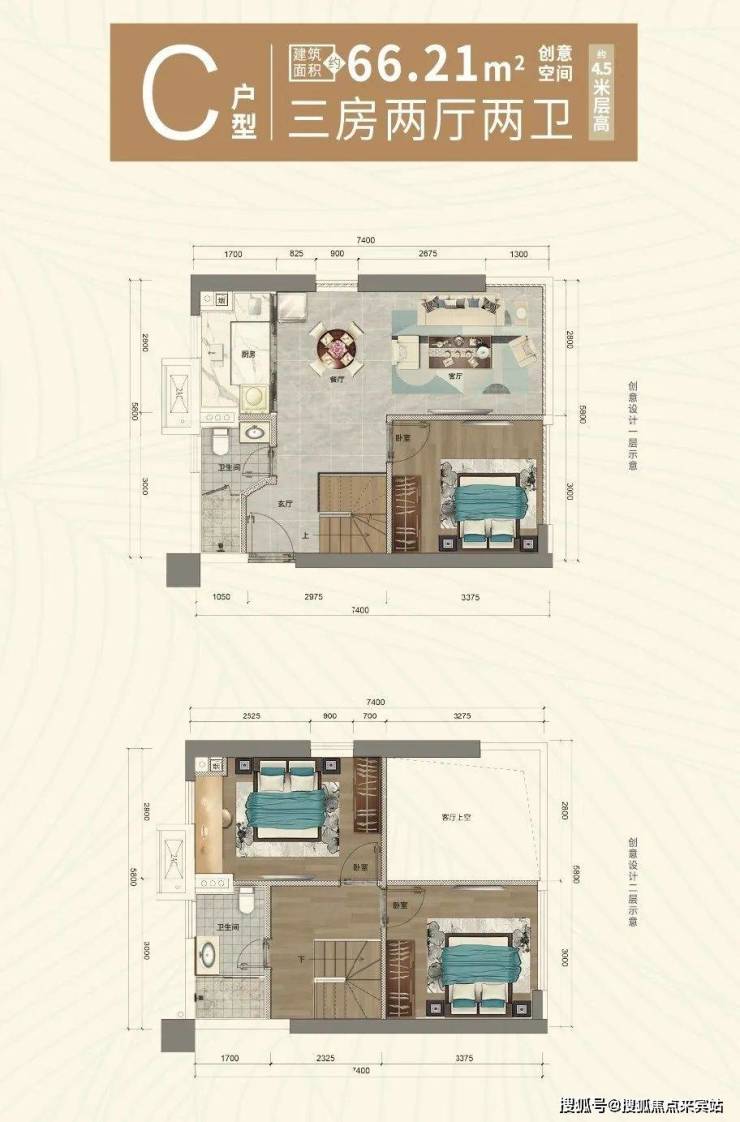 C户型 66.21㎡三房两厅两卫