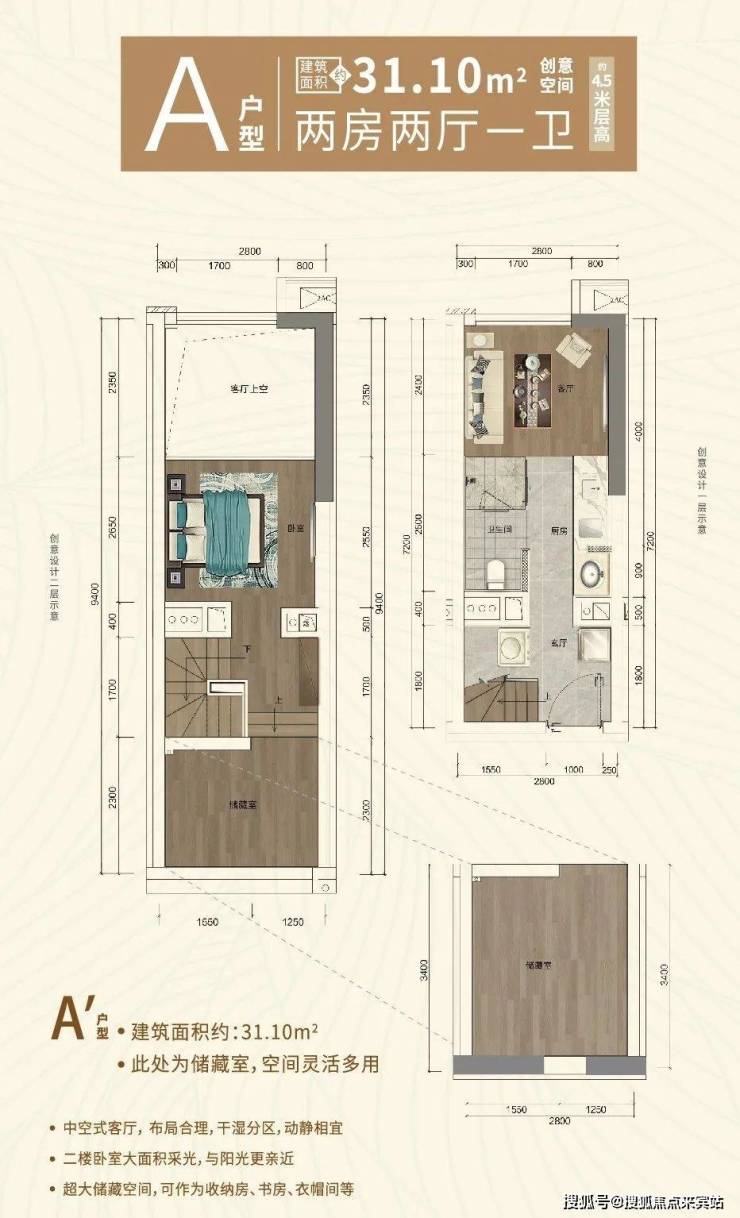 A户型 31.10㎡两房两厅一卫