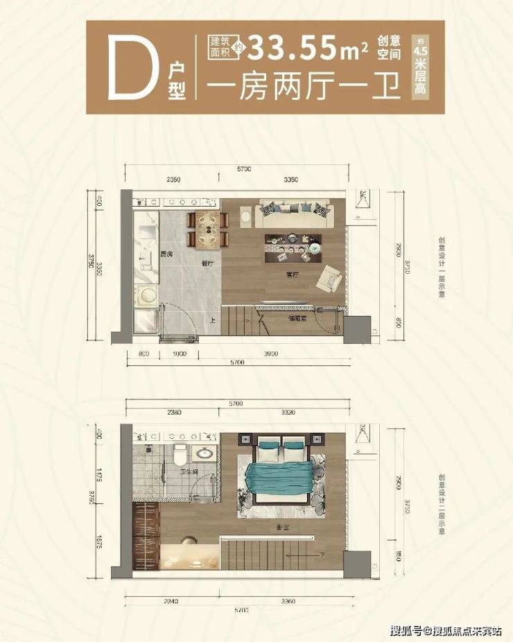D户型 33.55㎡一房两厅一卫
