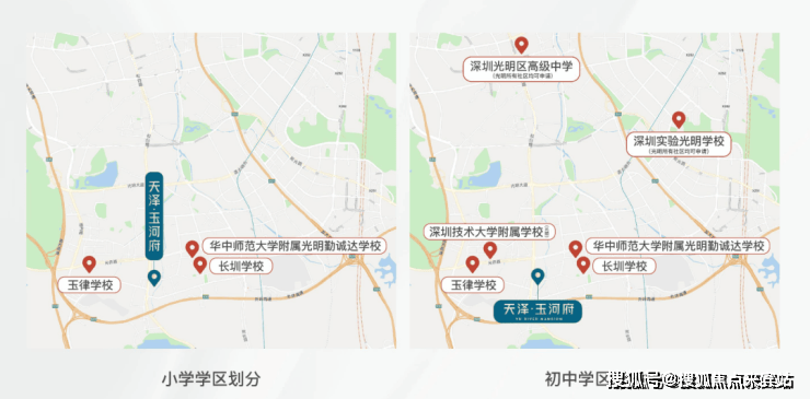 学校方面“周边的教育资源很丰富,包括长圳学校、玉律学校、华中师范大学附属光明勤诚达学校、深圳技术大学附属学校(光明)、深圳实验光明学校(光明所有社区均可审请)、深圳光明区高级中学(光明所有社区均可审请)等学校。(积分入学和学区划分政策,以当年教育局和学校的规定为准)