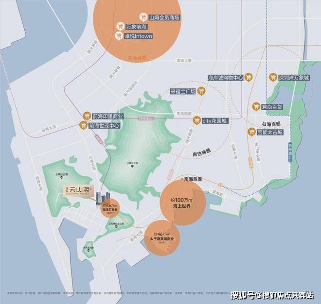 干道环伺:约1.5公里范围内有兴海大道、南海大道、望海路、港湾大道、月亮湾大道等干道,直抵前海、宝中、福田