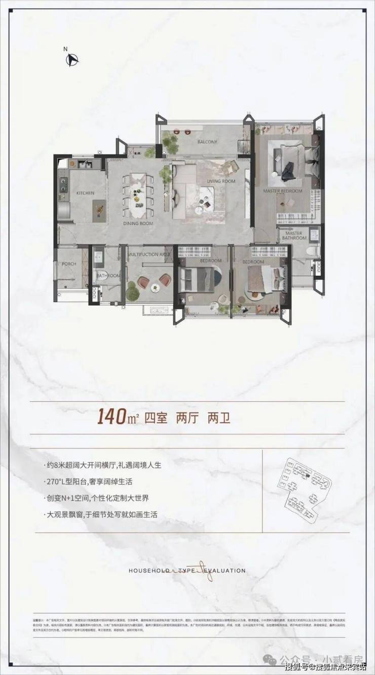项目在售多种户型。97 平三房,入门门槛友好,次卧采光一般。110 平有 B、C 两种户型,B 户型采光好,C 户型厨房操作台大。131 平有 A、B 两种户型,A 户型三卧室朝南,B 户型望海珠湿地公园景观好。140 平为横厅设计,南北对流,景观和舒适度俱佳。目前价格具有性价比,随着周边配套完善,楼盘价值有望提升,生态环境优质,居住体验佳。