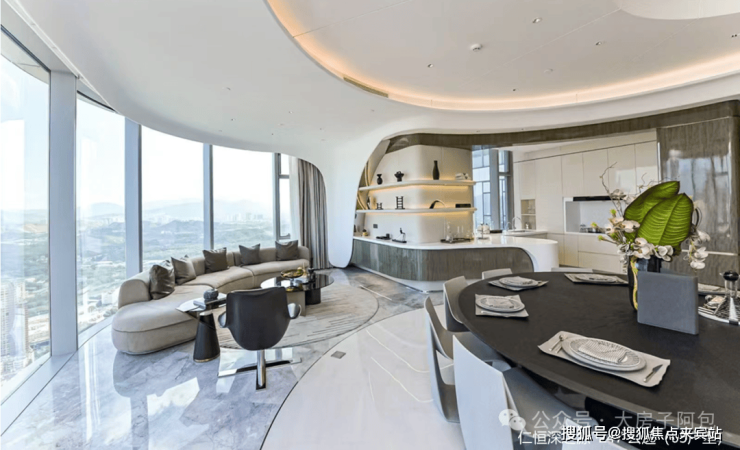 ◎云端环幕视野-约208米云端地标,270°环幕视野,定制超白三层中空LOW-E曲面玻璃,坐拥地标级城市景观与稀缺山水资源