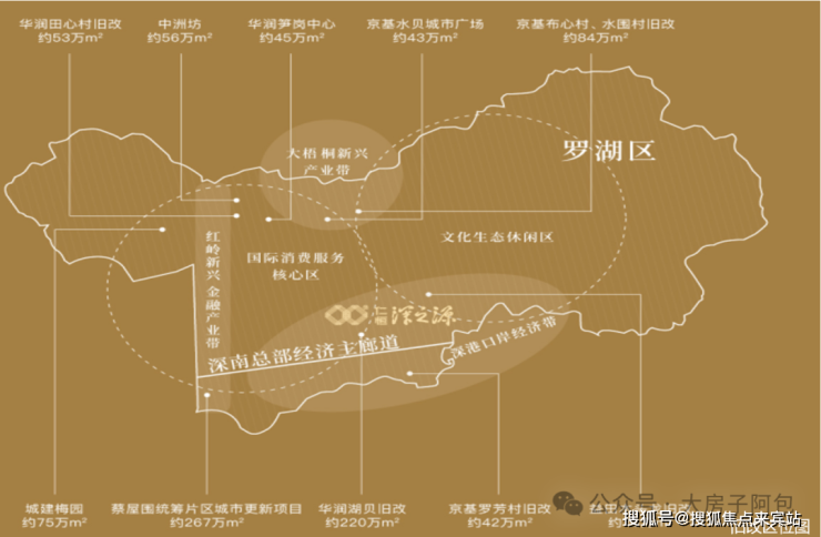 ◎罗湖四大千亿片区,华润、招商、中海、仁恒、京基、天健等十余家房企云集。